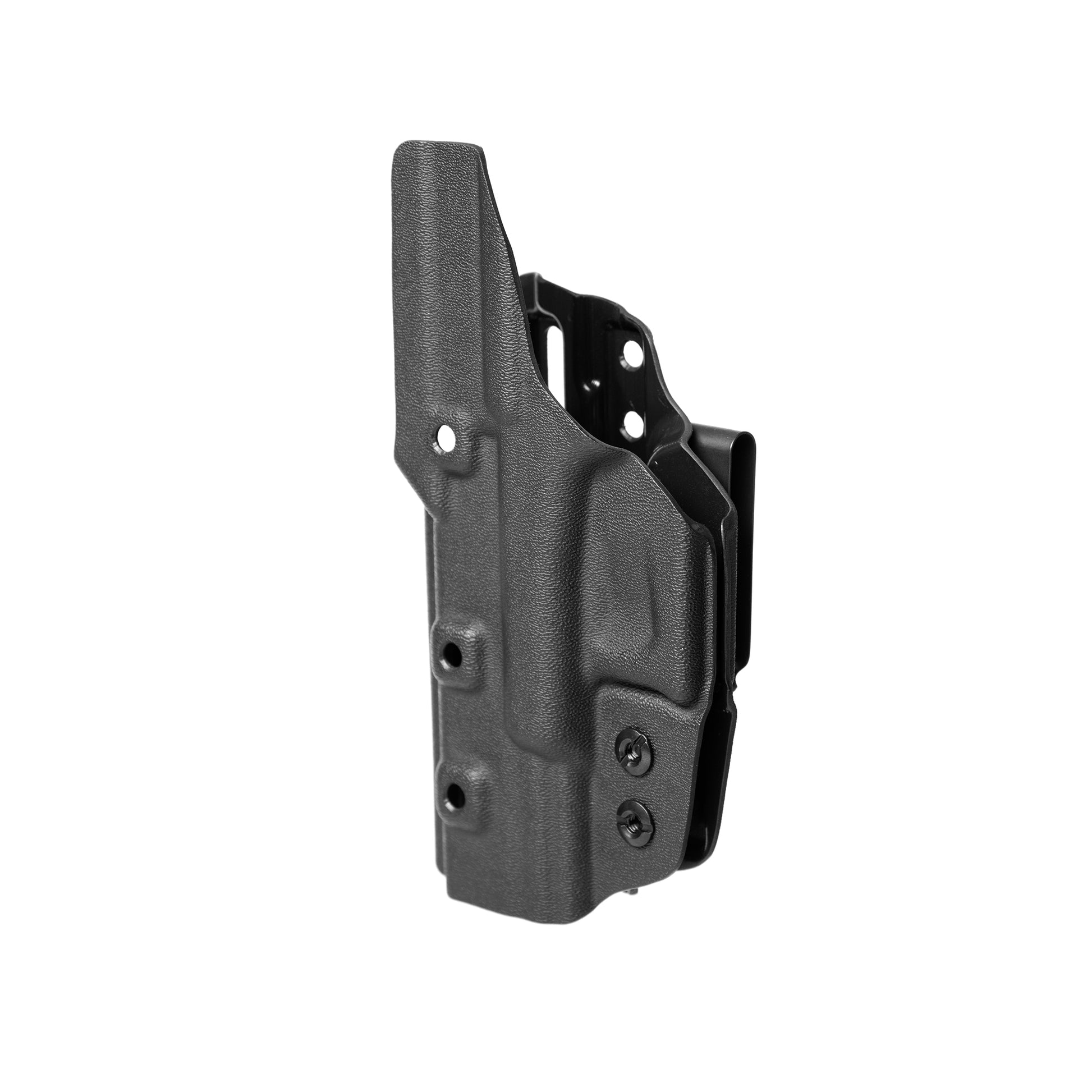 All holsters come standard with adjustable retention, full sweat guard, and optic cut. The sweat guard is not currently customizable.