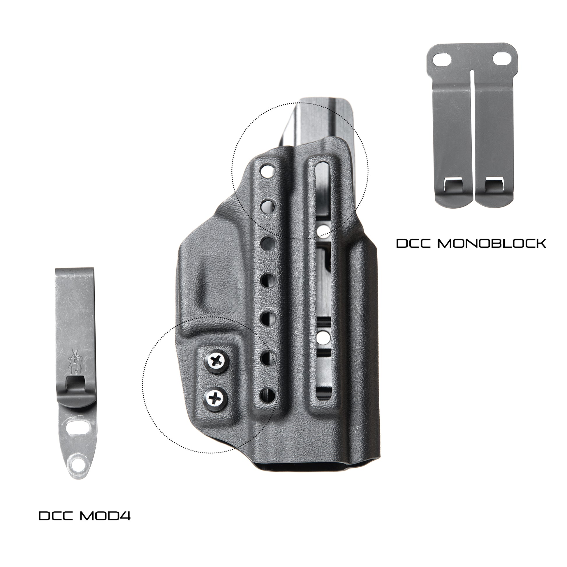 The next generation of concealed carry is here. The Onyx-S is a bare-bones variant of our Onyx IWB holster. You can select either a DCC Monoblock, single DCC Mod4 clip, or double DCC Mod4 clip configuration by default, and can always add the Tegris Mounting System (TAS) or additional clips at a later time. This is a sleek solution for all carry preferences so you can carry with consistency. This RIGHT-HAND ONLY holster arrives as an all-in-one kit, and includes the following: