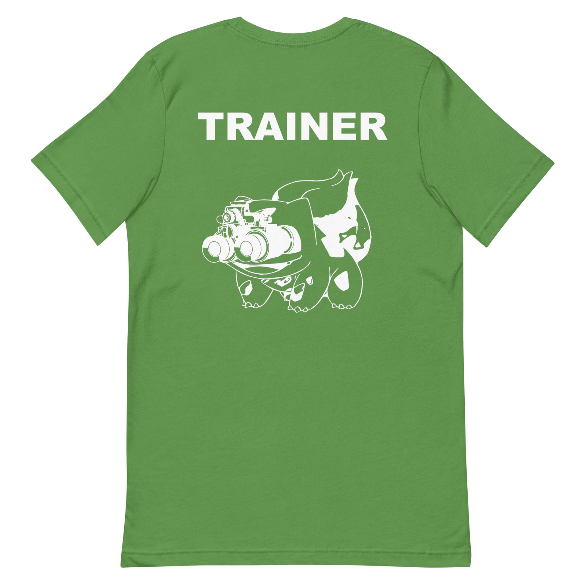 Throw it back to your favorite starter! This IYKYK trainer T perfectly blends your childhood adventures with Bulbasaur and your modern grownup activities. Carry your buddy on your back proudly as you exterminate those hogs, send sims into your dear friends, punch holes in paper, or just take the trash to the curb.