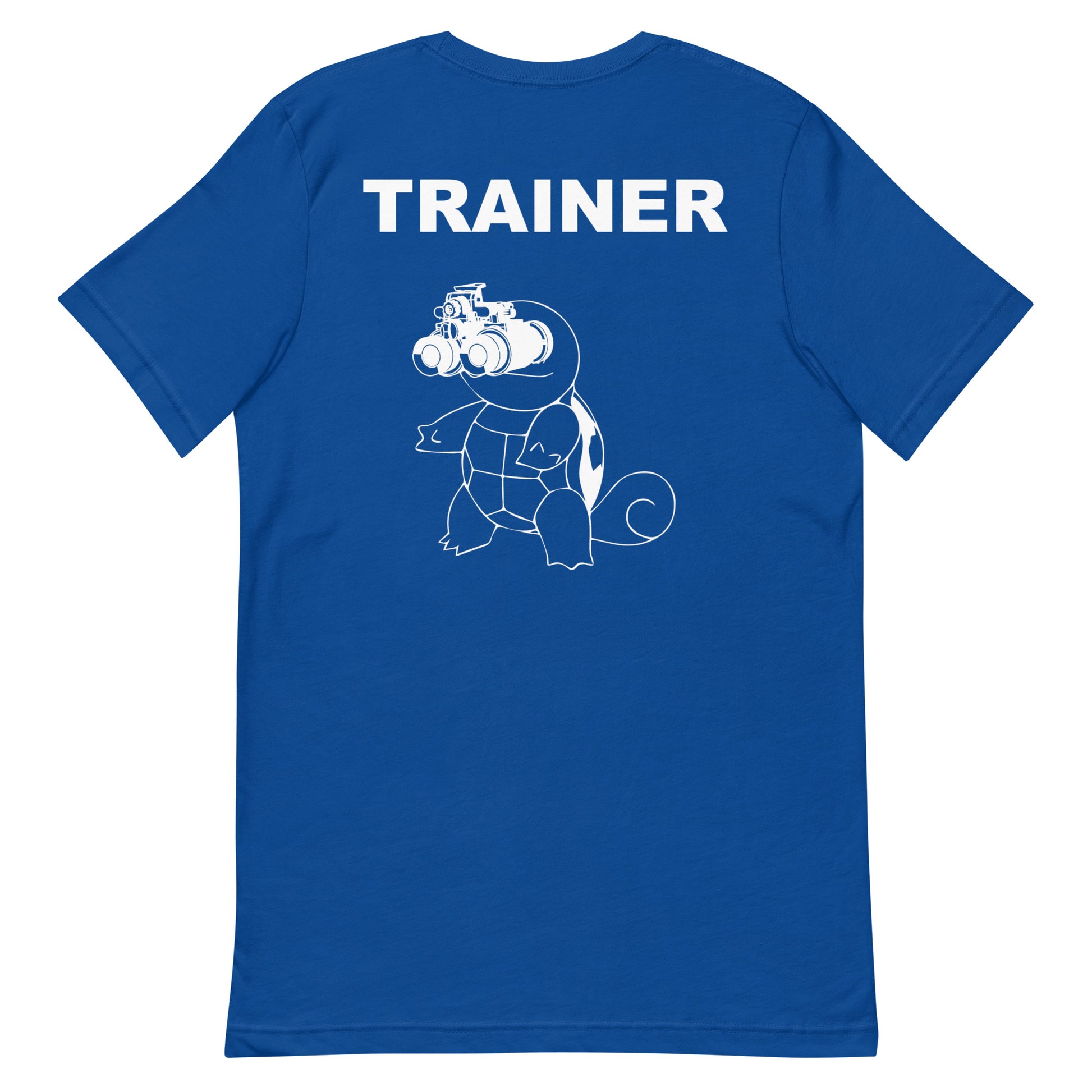 Throw it back to your favorite starter! This IYKYK trainer T perfectly blends your childhood adventures with Squirtle and your modern grownup activities. Carry your buddy on your back proudly as you exterminate those hogs, send sims into your dear friends, punch holes in paper, or just take the trash to the curb.